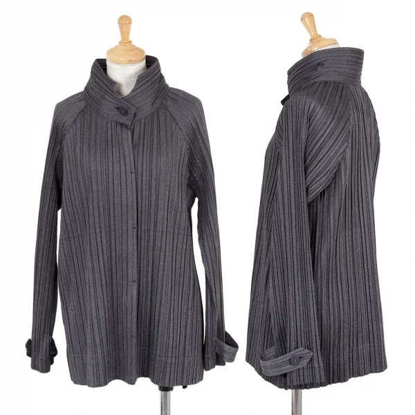 【SALE】プリーツプリーズPLEATS PLEASE マオカラーフライフロントジャケット グレー3