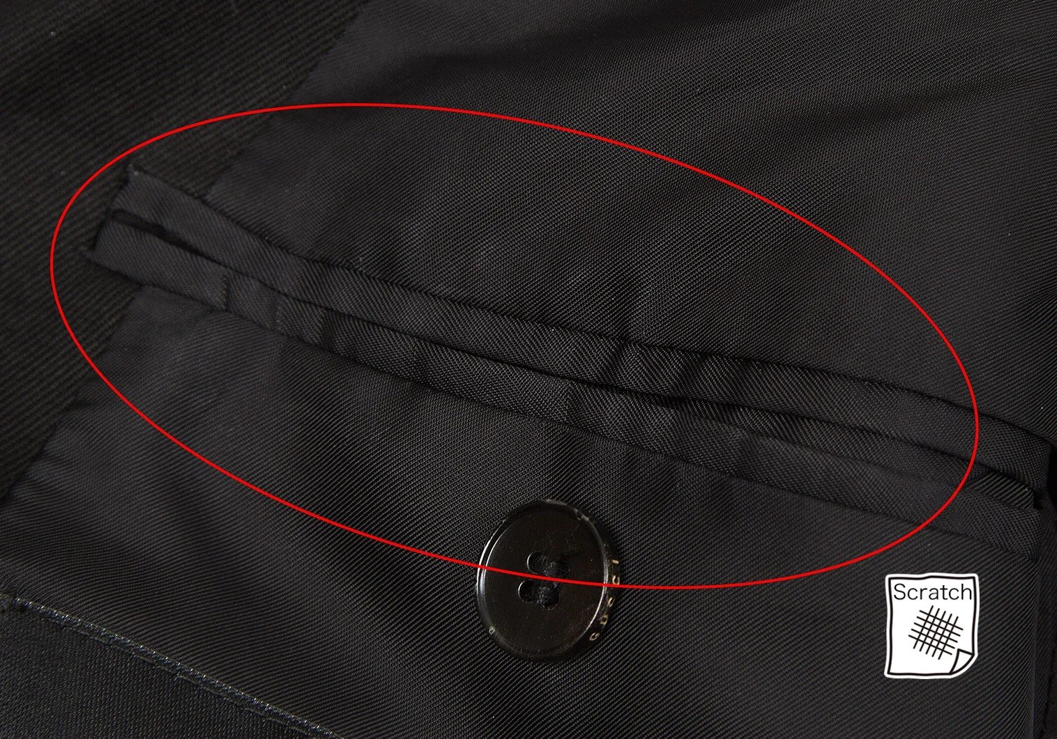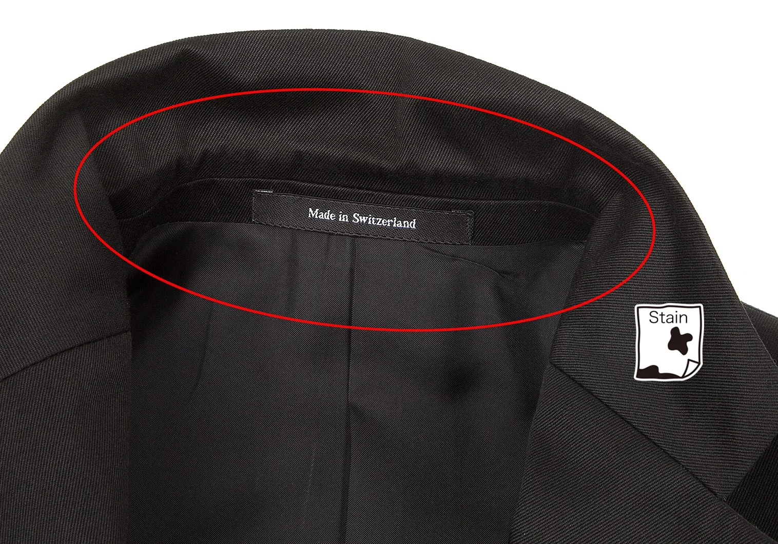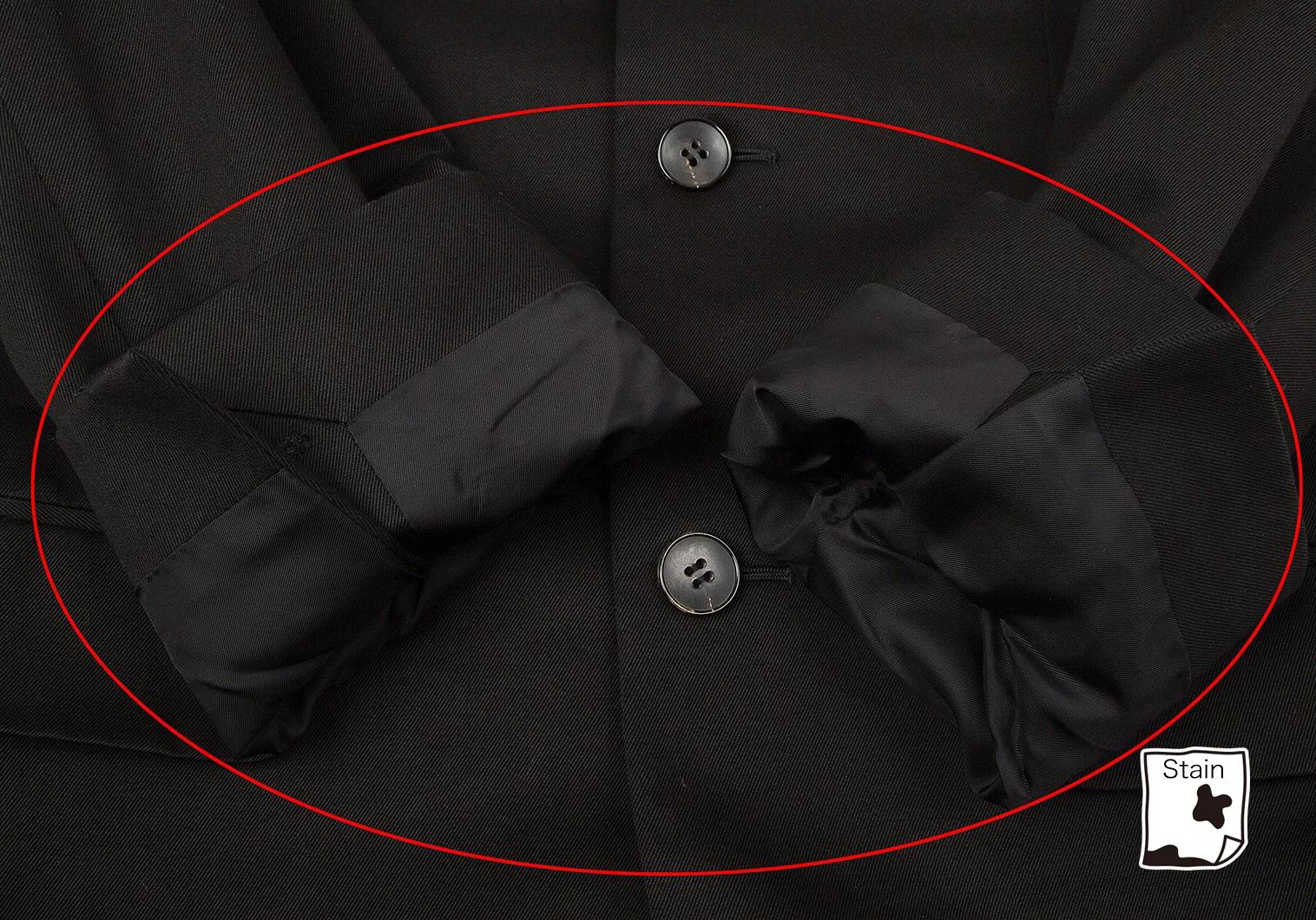 襟裏・袖先・袖裏に薄汚れあり、内ポケットにスレがあります(画像参照)。その他目立ったシミ、汚れ、ほつれ等なくいい状態です。クリーニング済み