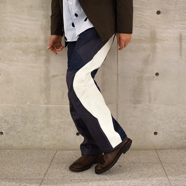 【SALE】ワイズフォーメン×ダイネーゼY's for men×DAINESE レザー切替バイカーデニム 青3(50)