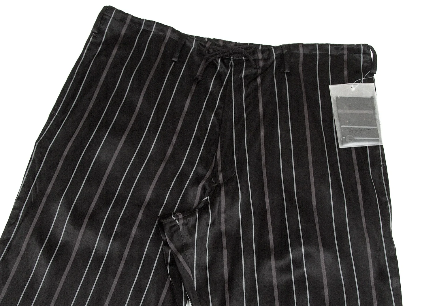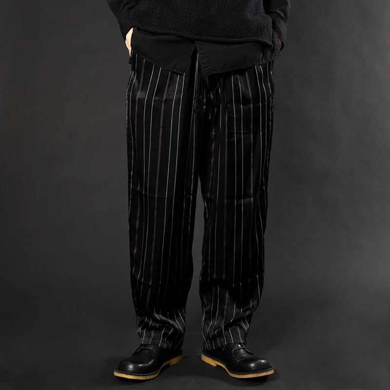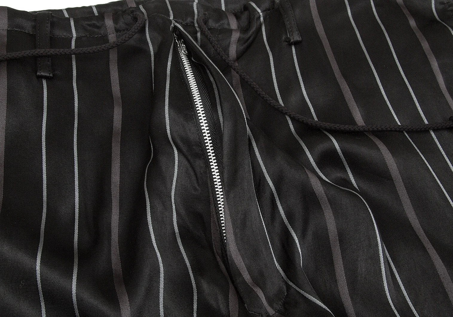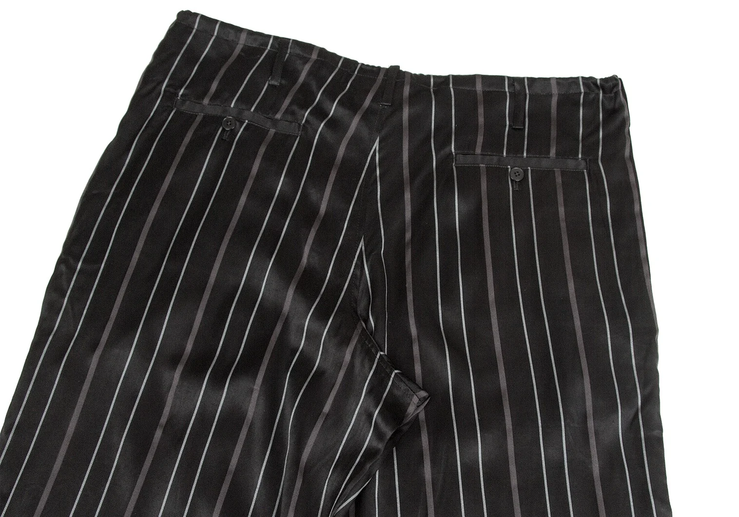 【SALE】ヨウジヤマモト プールオムYohji Yamamoto POUR HOMME レーヨンストライプ光沢パンツ 黒2