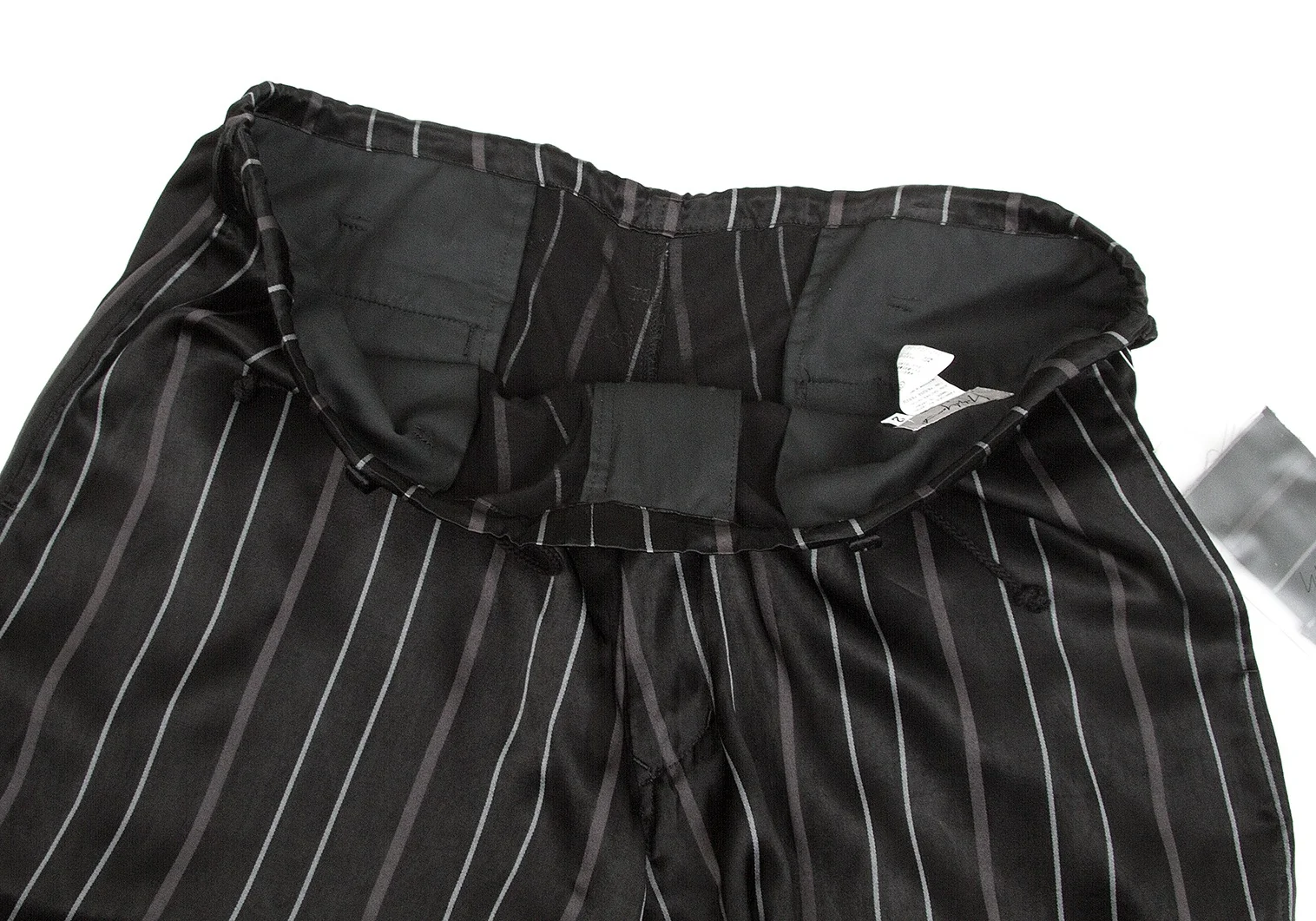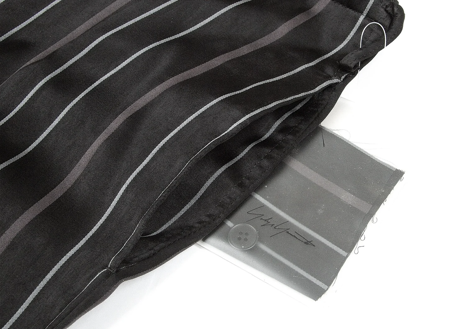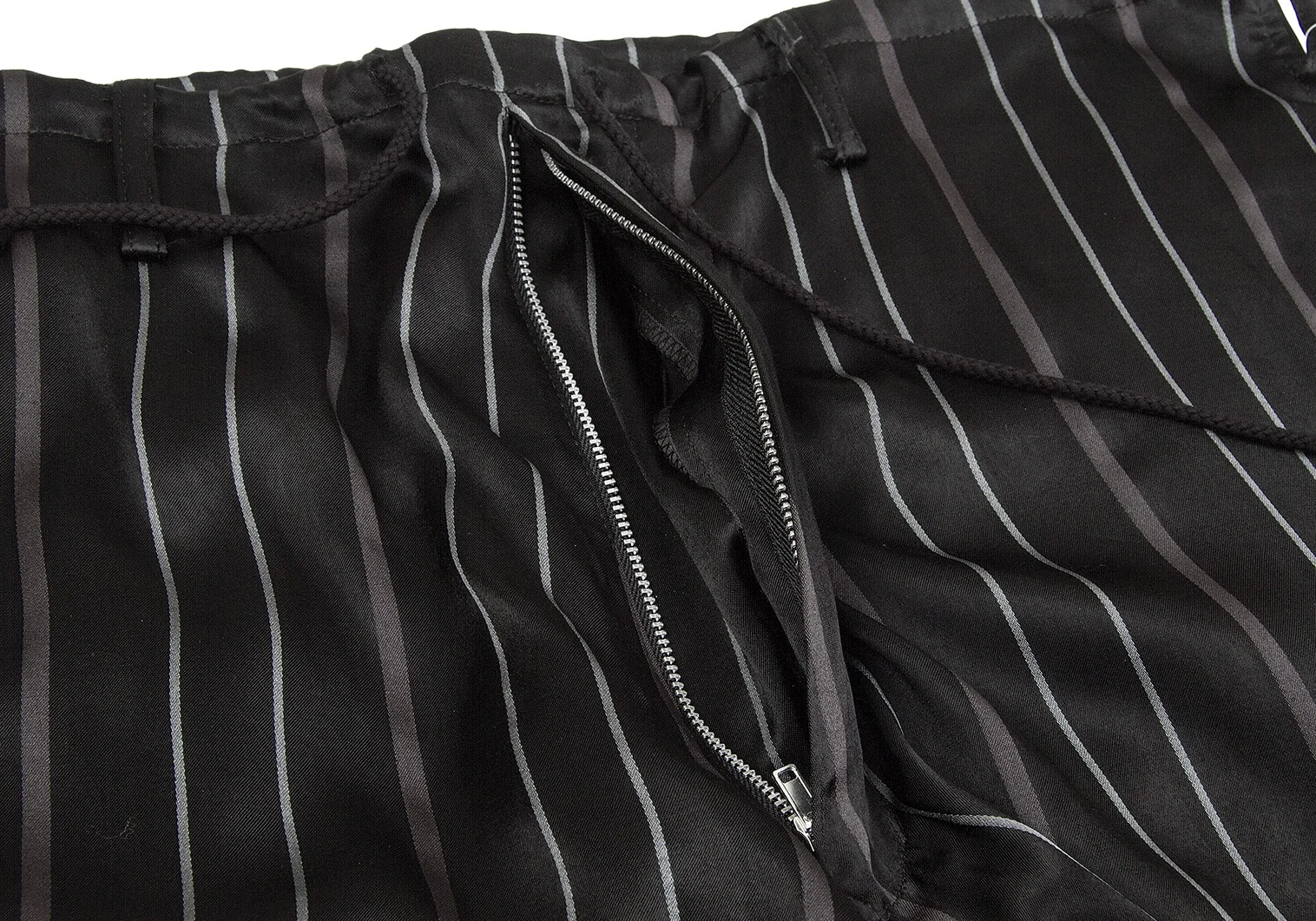 【SALE】ヨウジヤマモト プールオムYohji Yamamoto POUR HOMME レーヨンストライプ光沢パンツ 黒2