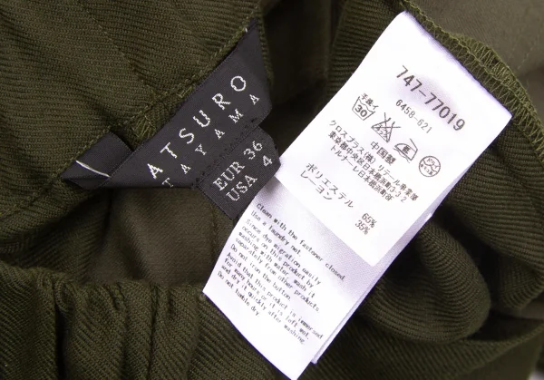 アツロウタヤマATSURO TAYAMA クロップド丈ラップデザインパンツ カーキ36