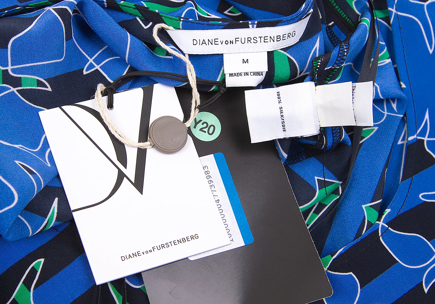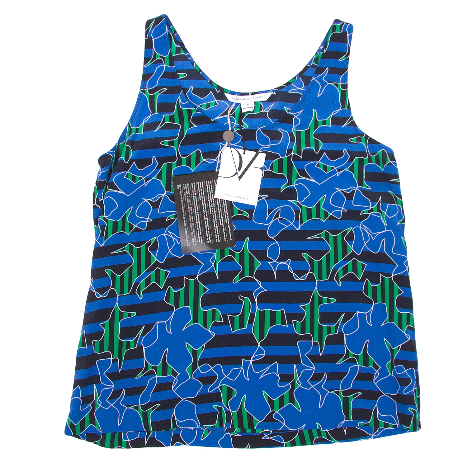 新品!【SALE】ダイアンフォンファステンバーグDIANE VON FURSTENBERG シルクグラフィックプリントストライプノースリーブ 青他M