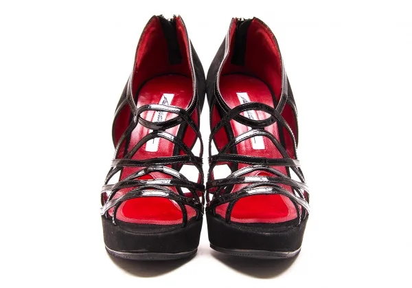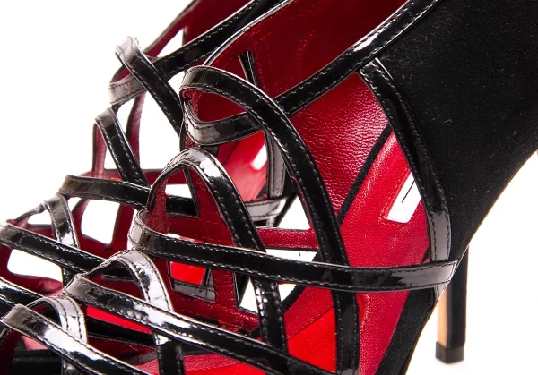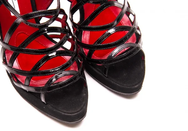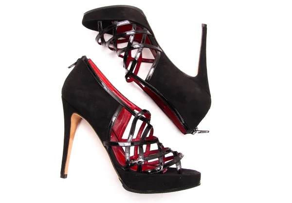 ブライアンアトウッドBRIAN ATWOOD エナメルストラップスウェードヒールサンダル 黒36.5(23.5位)