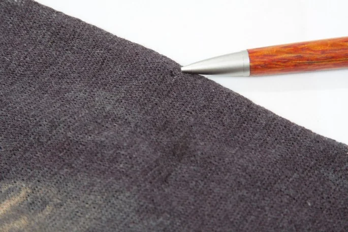 左袖口に小さな穴あり(写真ペン先参照)。その他は目立ったシミ、汚れ、ほつれ等なくいい状態です。