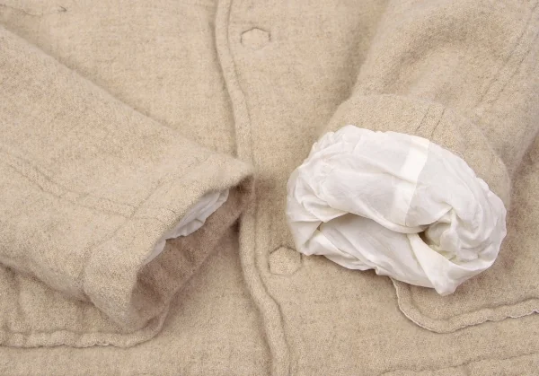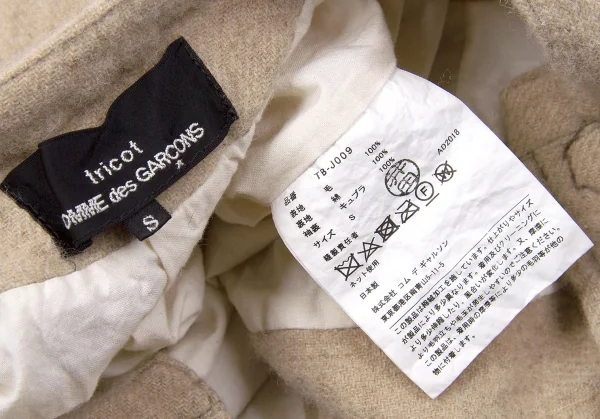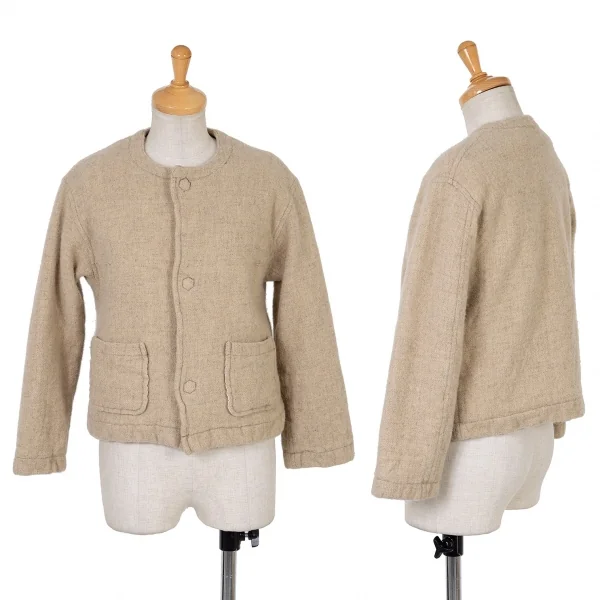 トリコ コムデギャルソンtricot COMME des GARCONS 縮絨ノーカラースナップボタンジャケット ベージュS