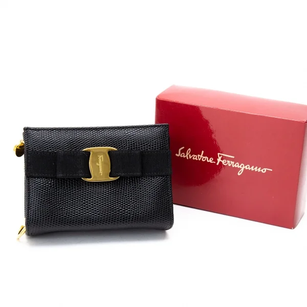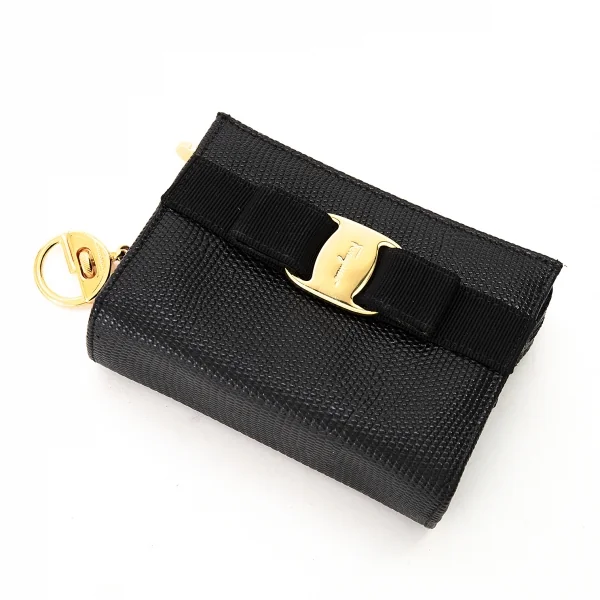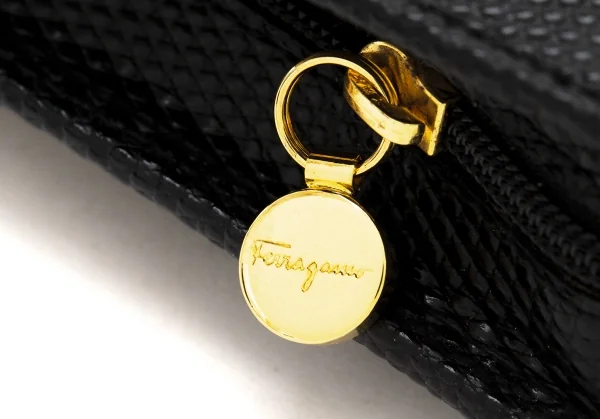サルヴァトーレフェラガモ Salvatore Ferragamo 型押しレザーミニポーチ 黒