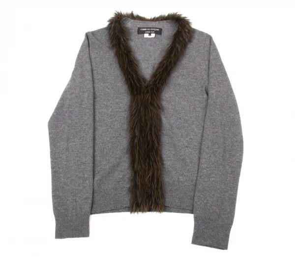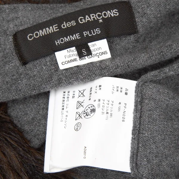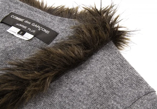 コムデギャルソン オムプリュスCOMME des GARCONS HOMME PLUS ファー装飾ニットジップカーディガン グレーS