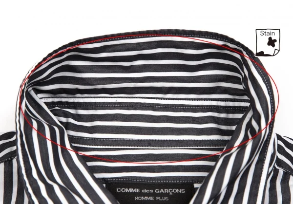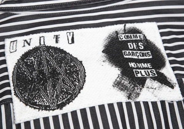 コムデギャルソン オムプリュスCOMME des GARCONS HOMME PLUS タイムフォーマジックバックパッチストライプ長袖シャツ 白グレーS