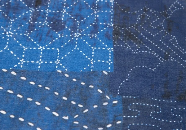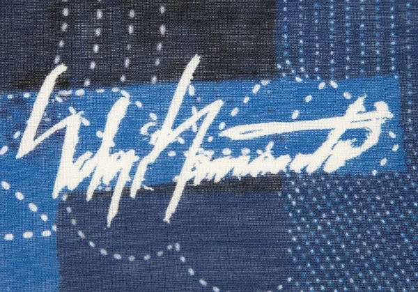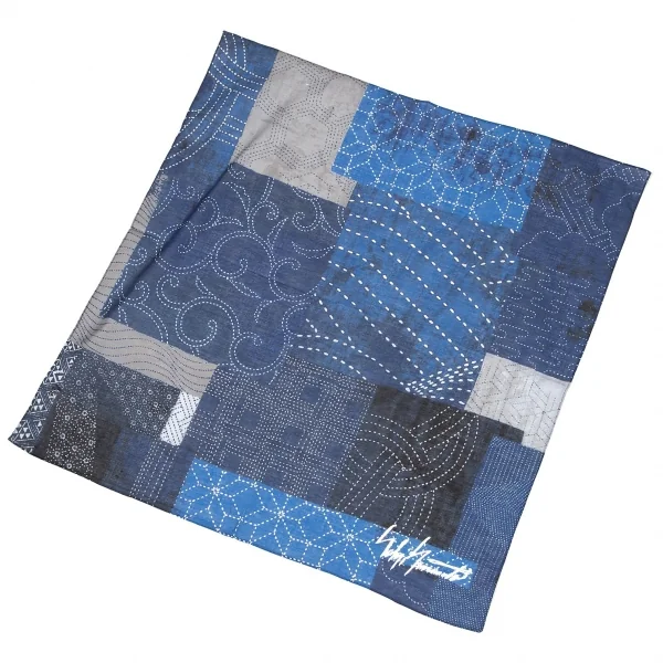 新品!ヨウジヤマモトプールオムYohji Yamamoto POUR HOMME 阪急限定ノベルティ刺し子プリントハンカチ 紺系