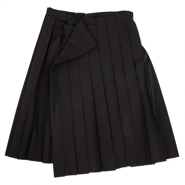 ヨウジヤマモト ファムYohji Yamamoto FEMME ウールポリギャバプリーツラップスカート 黒2