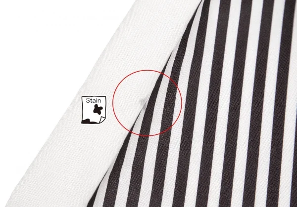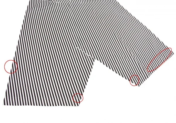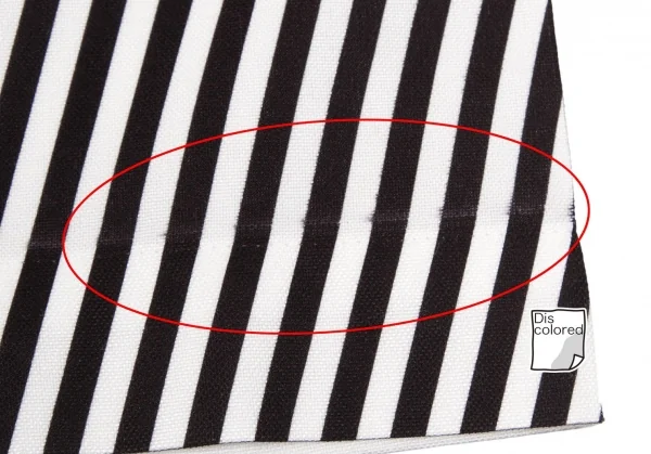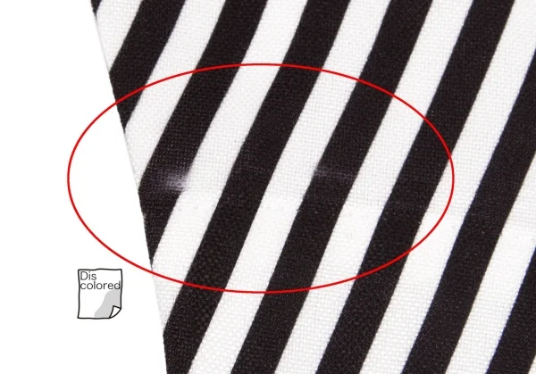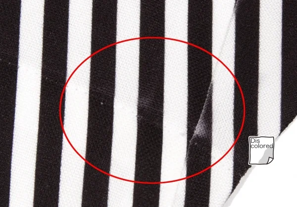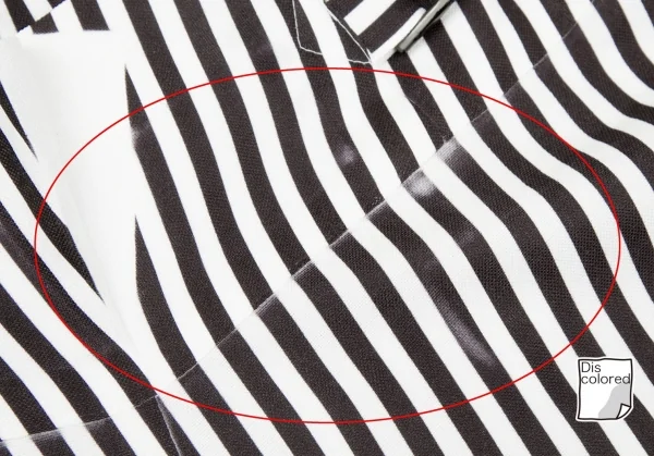 少し透け感のある生地です。右脚に汚れ、ウエスト・裾にプリントの色褪せがあります(画像参照)。その他目立ったシミ、汚れ、ほつれ等ありません。クリーニング済み
