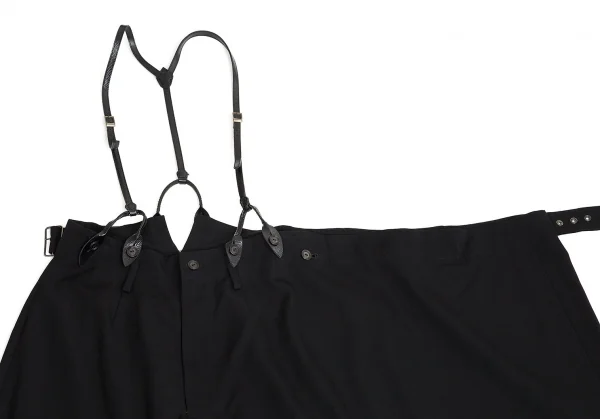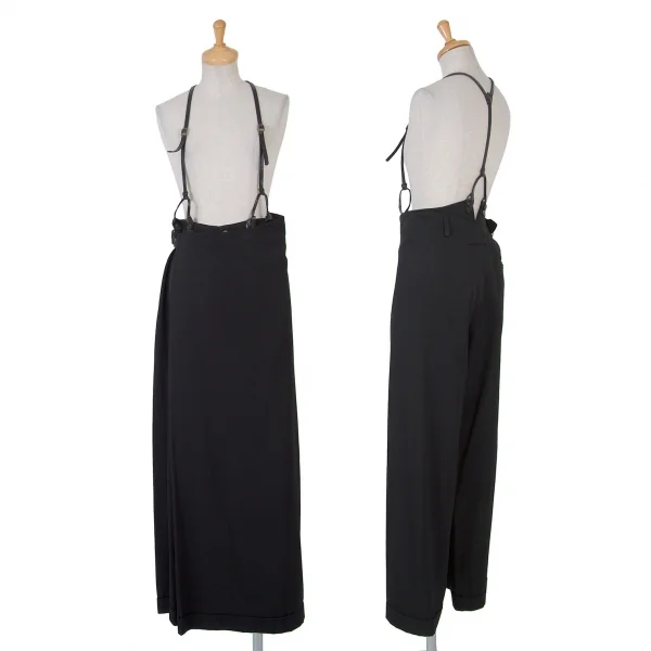 ジャンポールゴルチエ クラシックJean Paul GAULTIER CLASSIQUE ウールギャバハーフラップサスペンダーワイドパンツ 黒40