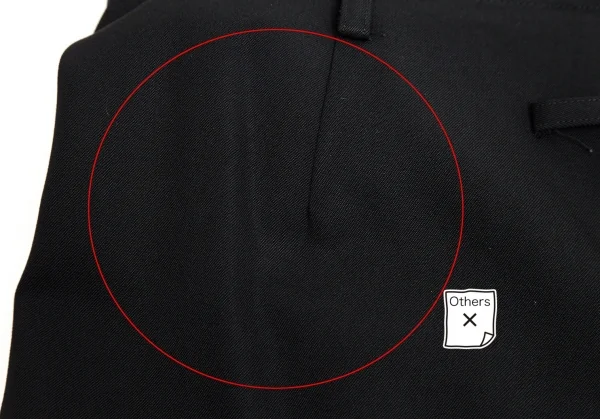 ベルトステッチにほつれ、股下と後ろウエストにテカリがあります(画像参照)。その他目立ったシミ、汚れ、ほつれ等ありません。クリーニング済み