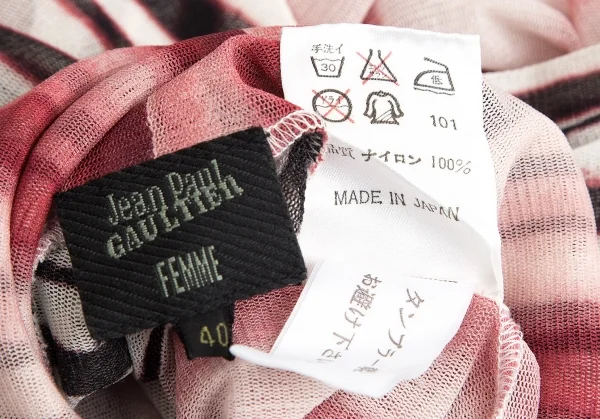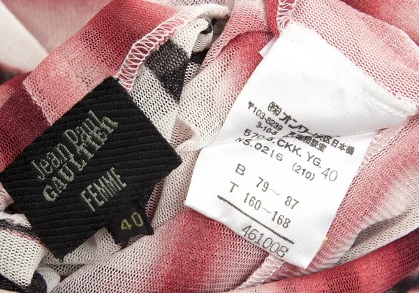 ジャンポールゴルチエ ファムJean Paul GAULTIER FEMME フェードストライプパワーネットハイネックノースリーブ 黒赤白40