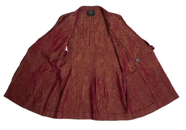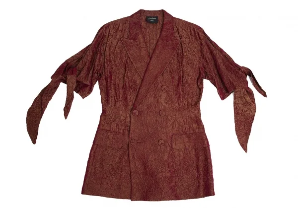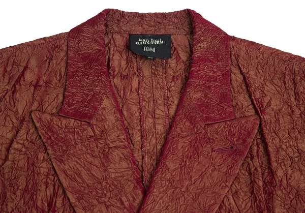 ジャンポールゴルチエ ファムJean Paul GAULTIER FEMME アセテートシワ加工ダブルジャケット 玉虫赤40