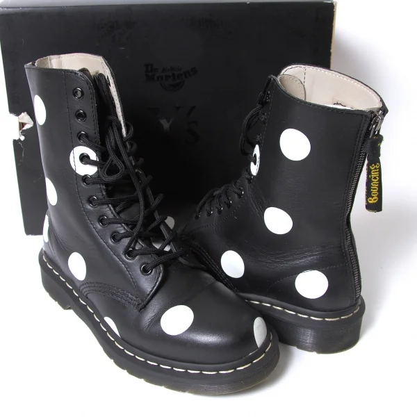 ワイズ×ドクターマーチンY's×Dr.Martens 10 EYE BOOT _ DOTS 10ホールバックジップブーツ 黒UK5