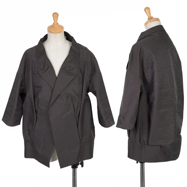 【SALE】マルニMARNI コットンポリ変形ラペルボタンレスジャケット チャコール40