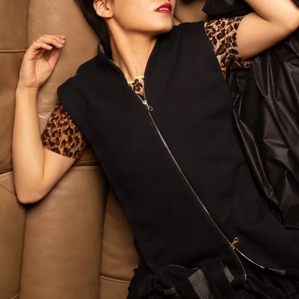 ソーイsoe ジップデザインジレストール 杢グレー黒 黒杢グレーXS