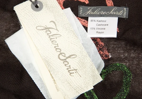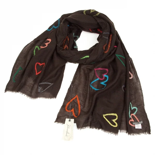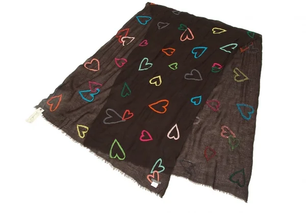 ファリエロサルティ Falierosarti ハート刺繍カシミヤストール こげ茶マルチ