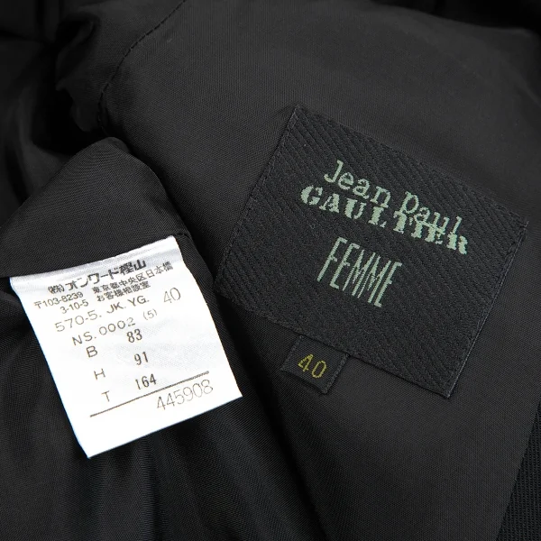 ジャンポールゴルチエ ファムJean Paul GAULTIER FEMME ロングストールデザインウールギャバジャケット 黒40