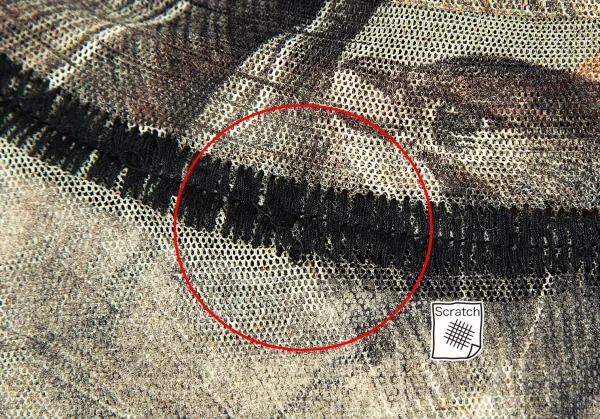 透け感のある生地です。首回りに引っ掛けがあります(画像参照)。その他目立ったシミ、汚れ、ほつれ等なくいい状態です。クリーニング済み