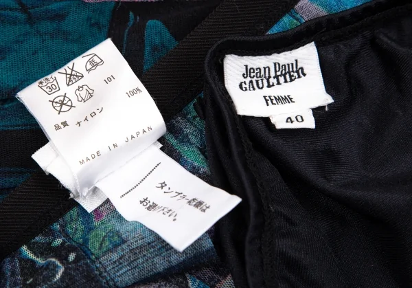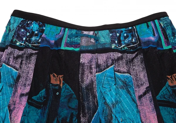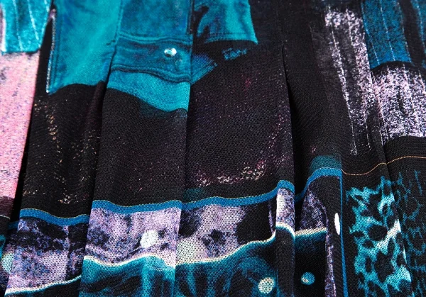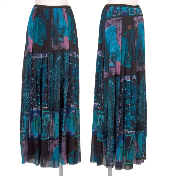 ジャンポールゴルチエ ファムJean Paul GAULTIER FEMME アイテムプリントパワーネットプリーツスカート 青40