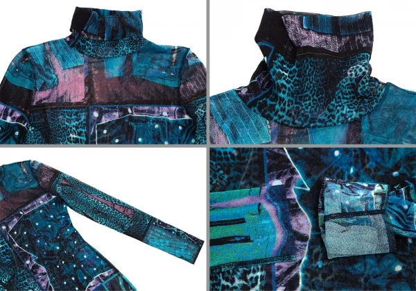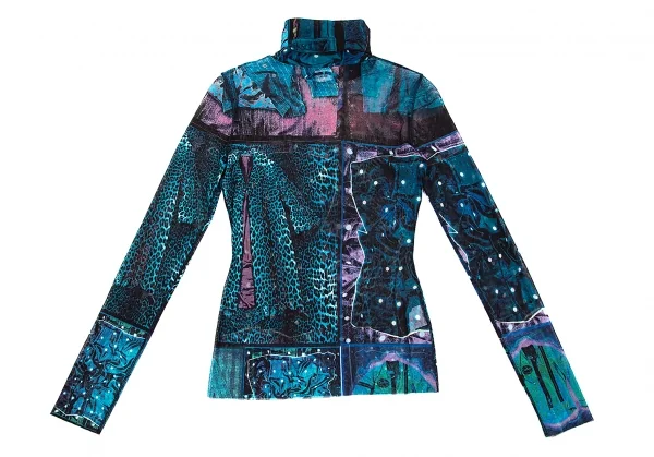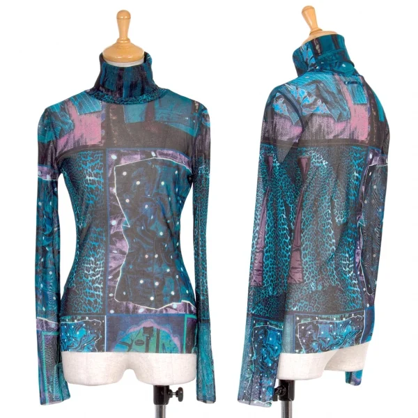 ジャンポールゴルチエ ファムJean Paul GAULTIER FEMME アイテムプリントパワーネットセットアップスーツ 青40
