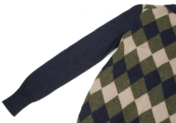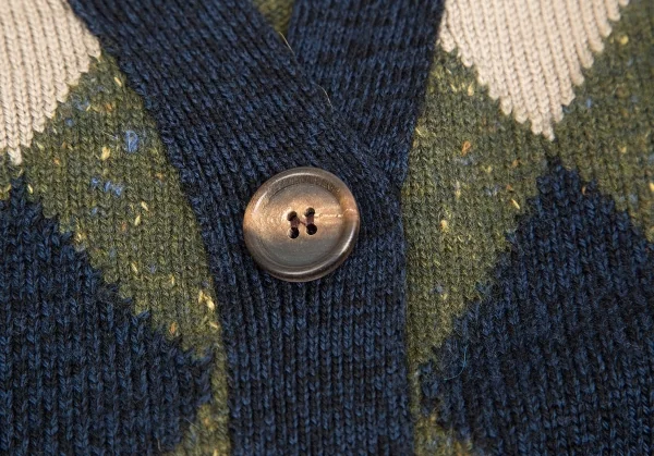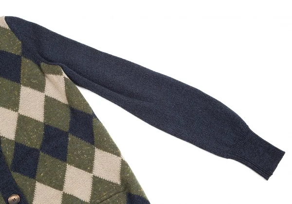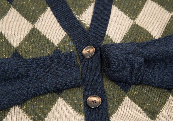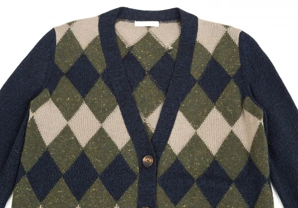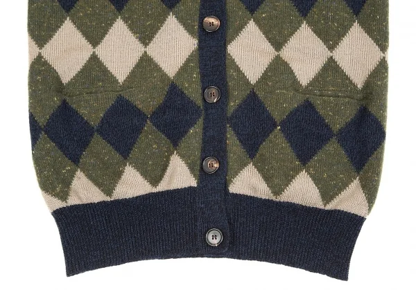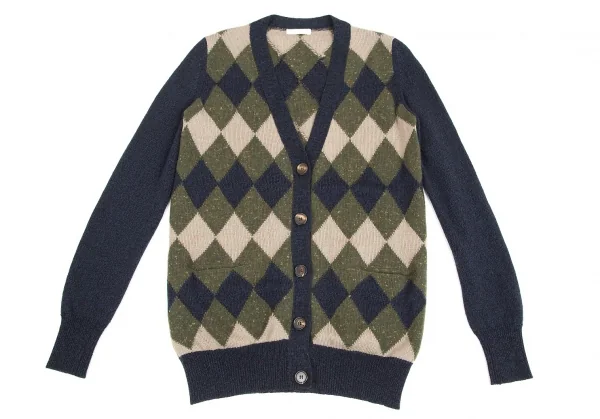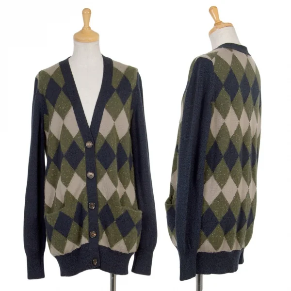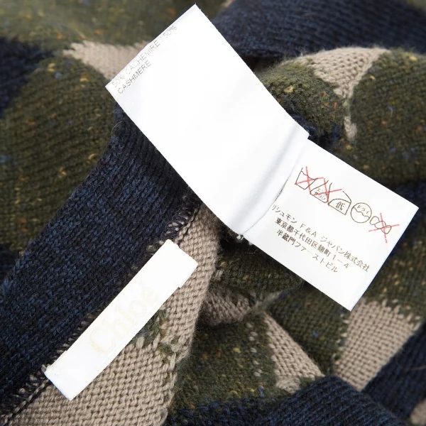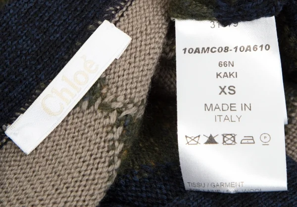 クロエChloe ウールカシミヤダイヤチェックカーディガン 紺カーキ他XS