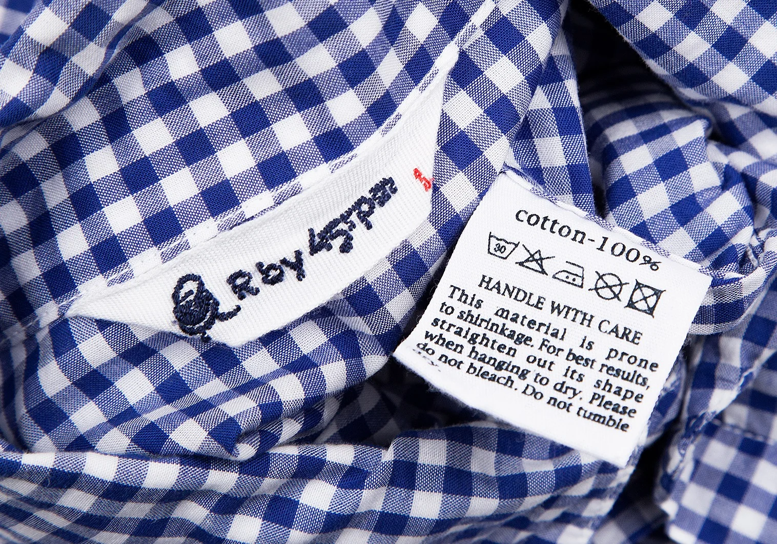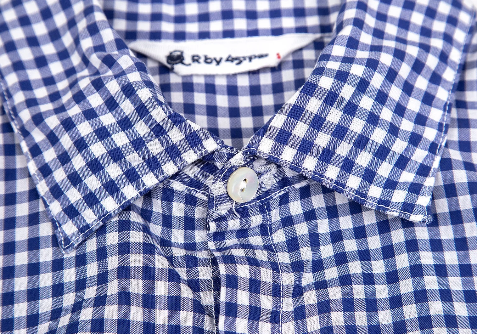 【SALE】R by 45rpm ギンガムチェック裾ドローコードシャツ 青白1