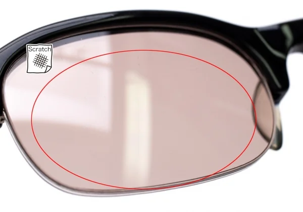 ケースには傷・汚れ・くすみがあります。レンズに細かいキズがあります(写真参照)。 お客様一人一人の視力、骨格、鼻幅、耳の高さが違います。このような理由からオンラインショップでの度付きレンズ販売はしておりません。 お手数をおかけしますが、度入りレンズはお近くの眼鏡店等でお買い求めください。 他眼鏡店にてレンズの入れ替え、調整等に生じた不具合、破損については一切の責任を負いかねますので予めご了承下さい。