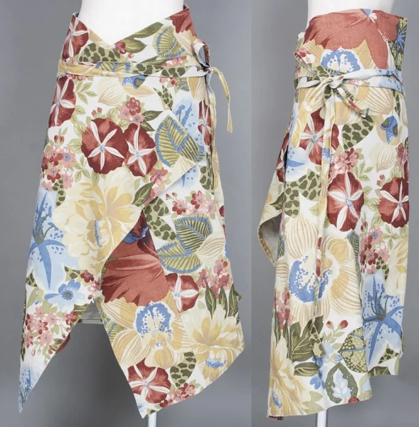 ケンゾーKENZO リネン巻きスカート 茶系M