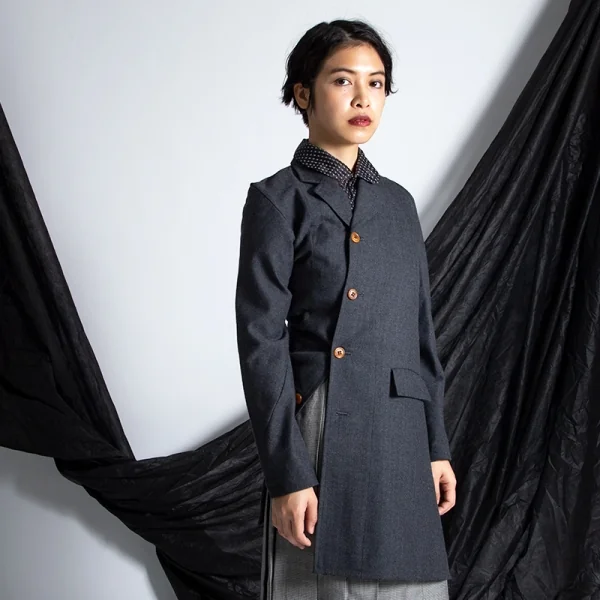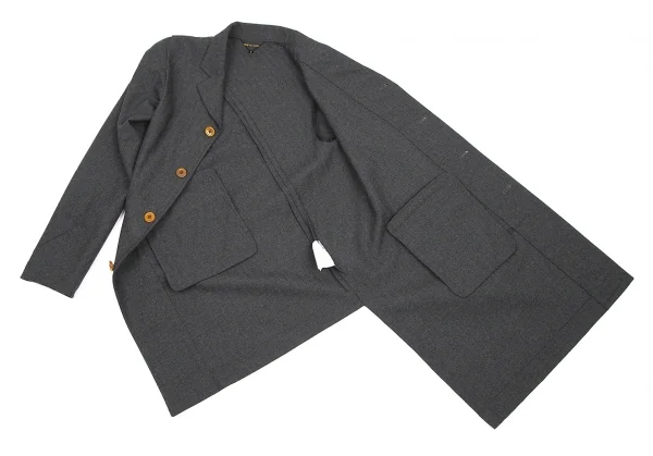 【SALE】コムデギャルソンCOMME des GARCONS ウールヘリンボーンストライプねじれジャケット チャコールS