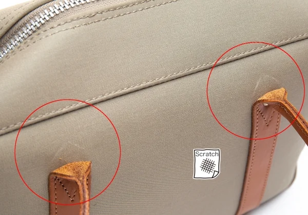 レザー部分小シミ・スレ、ハンドル付け根にスレがあります(写真参照)。その他に目立った汚れ、ダメージ等なくいい状態です。
