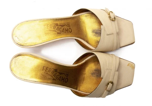 【SALE】サルバトーレフェラガモSalvatore Ferragamo ABRY ガンチーニバックルナローベルトミュール ベージュ23.5位