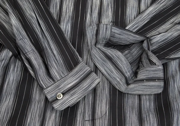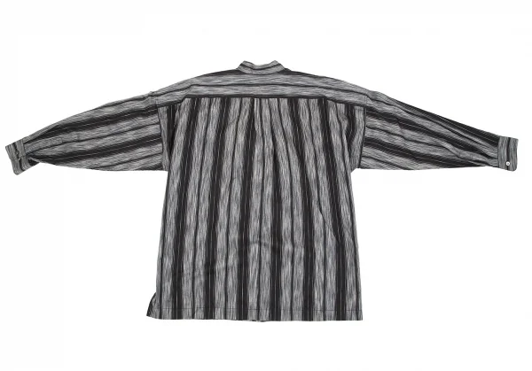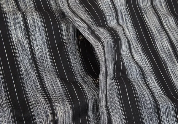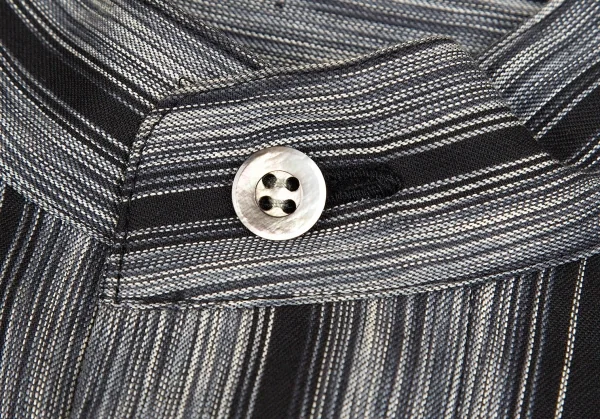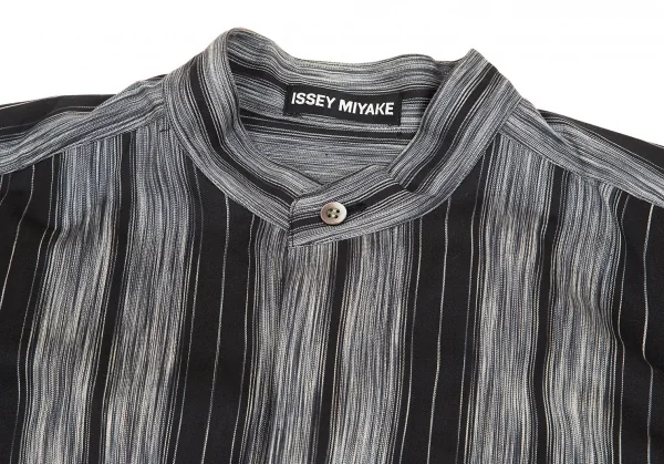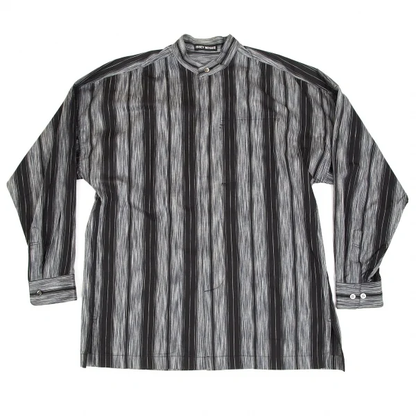 イッセイミヤケ メンISSEY MIYAKE MEN マオカラーフライフロントストライプコットン長袖シャツ 黒グレーL