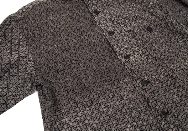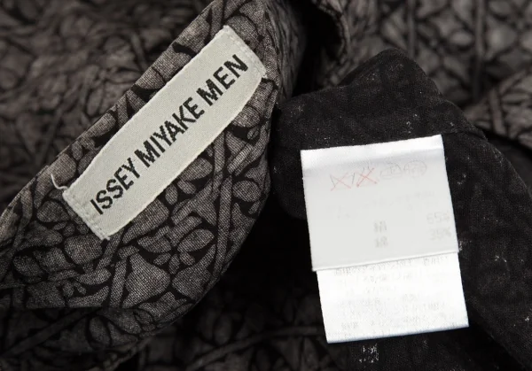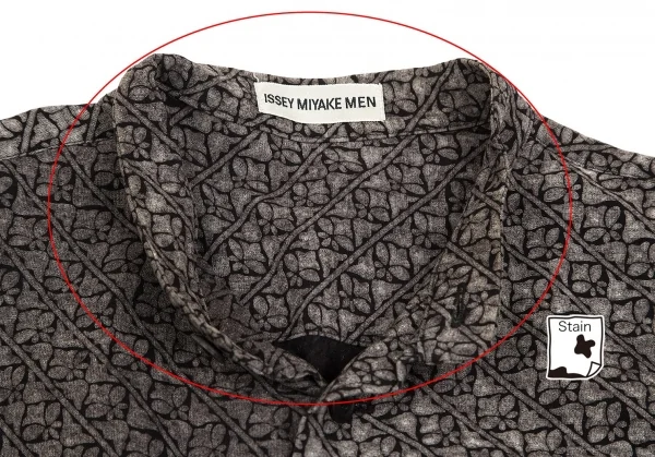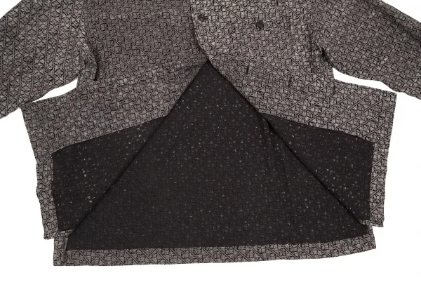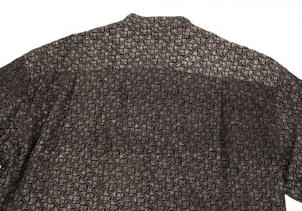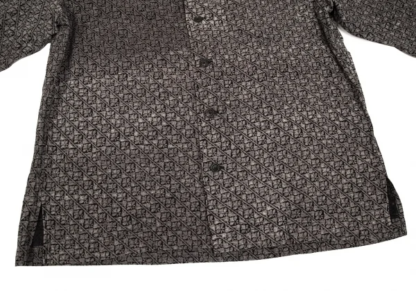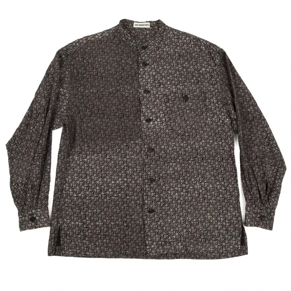 イッセイミヤケ メンISSEY MIYAKEMEN マオカラープリントシルクコットン長袖シャツ チャコールM
