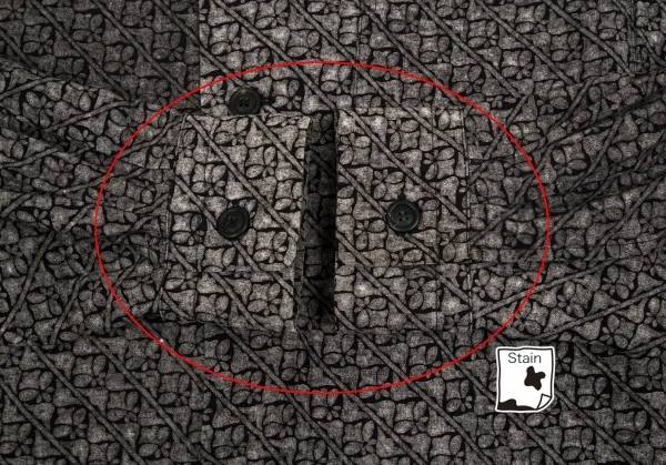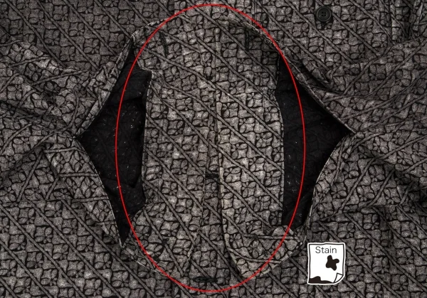 色ムラのあるデザインです。首回り・袖先・袖裏に汚れがあります(画像参照)。その他目立ったシミ、汚れ、ほつれ等ありません。クリーニング済み