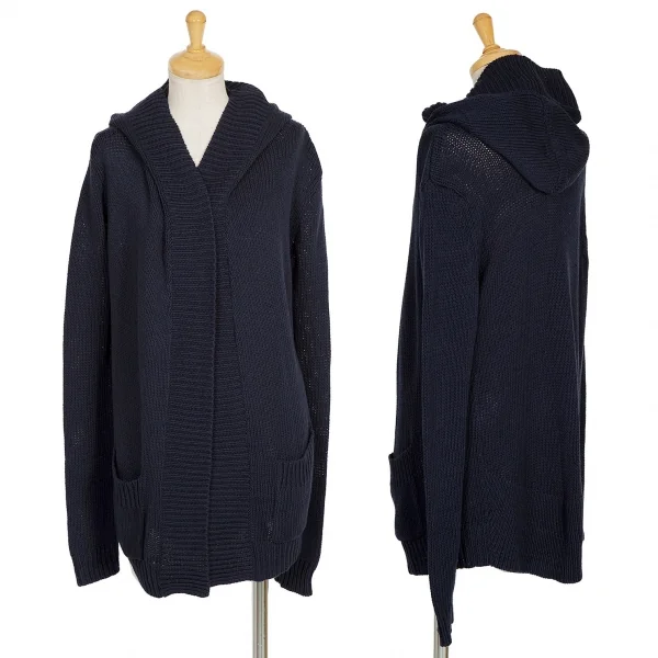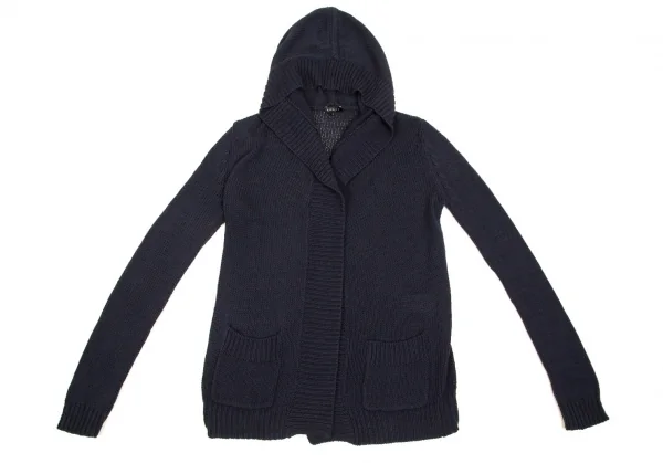 セオリーTheory シルクコットンローゲージニットボタンレスパーカー 紺S