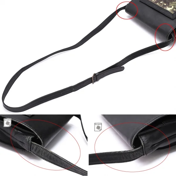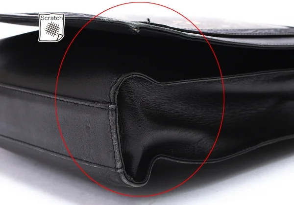 背面全体にキズ、角、ベルト付け根にスレ、フラップ裏ダメージがあります(写真参照)。その他に目立った汚れ、ダメージ等なくいい状態です。