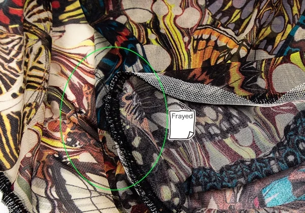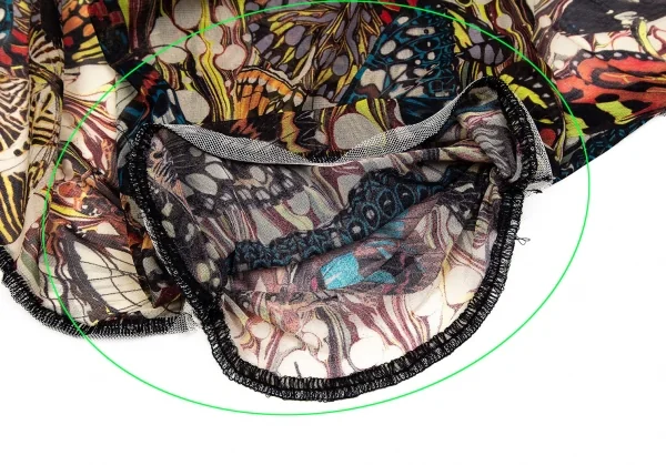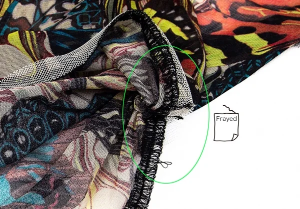 透け感のある生地です。裾まわりのステッチにほつれがあります(画像参照)。その他に目立ったシミ、汚れ、ほつれ等ありません。クリーニング済み