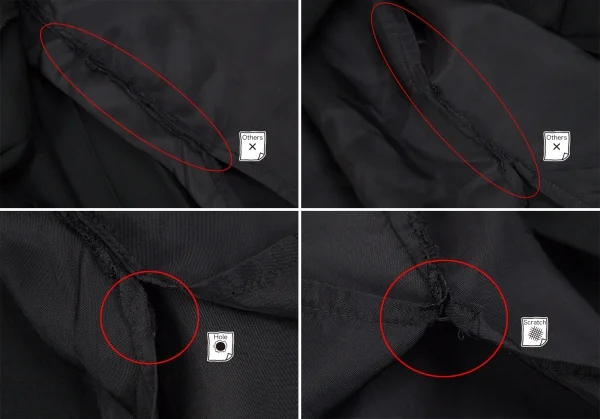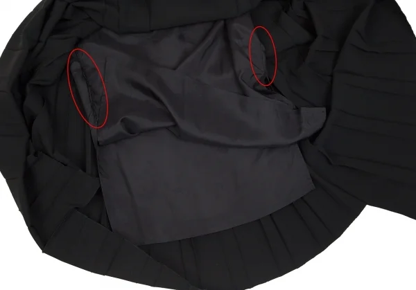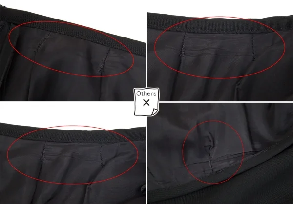ウエスト裏に縫い目の広がりあり、裏地に小穴・両サイドに補修跡あり、裏地スリット根元に破れ・スレがあります(画像参照)。その他・表側は目立ったシミ、汚れ、ほつれ等ありません。クリーニング済み