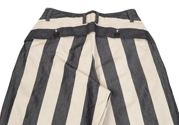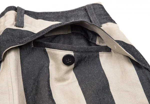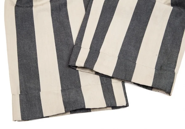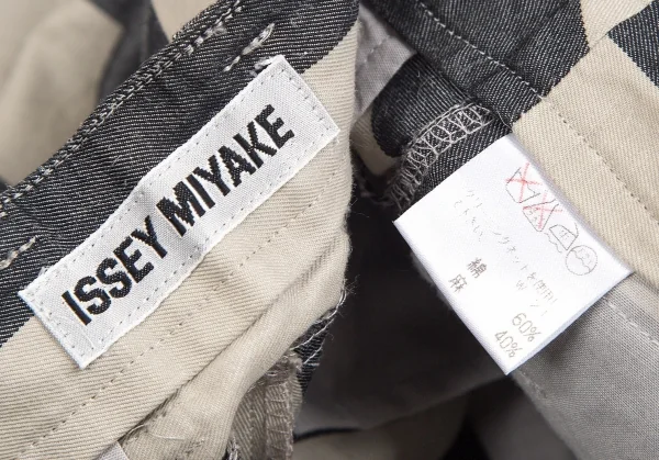 イッセイミヤケISSEY MIYAKEコットンリネンストライプワイドパンツ グレーベージュM