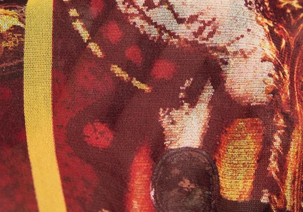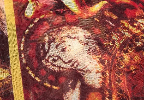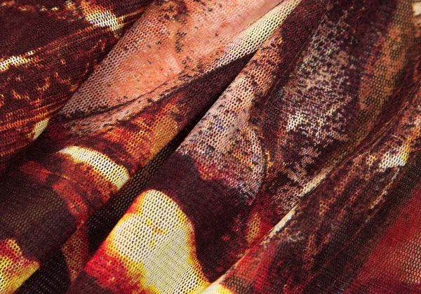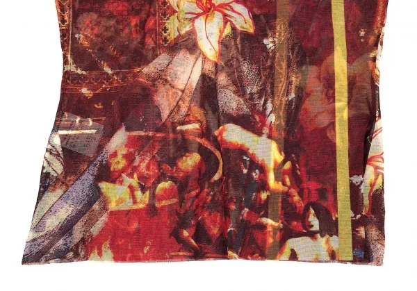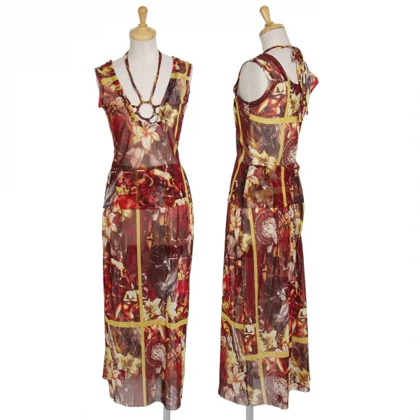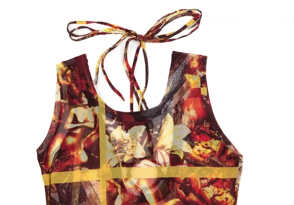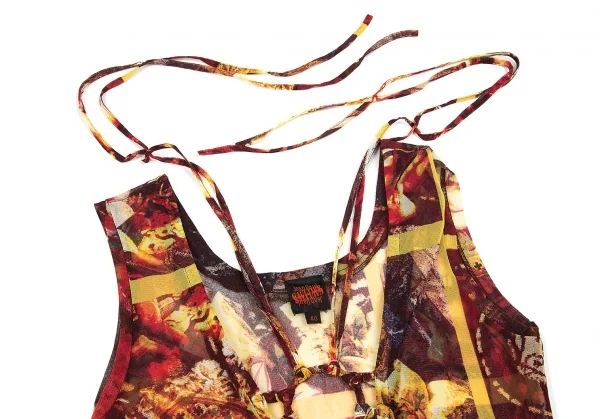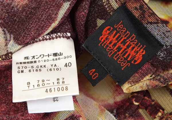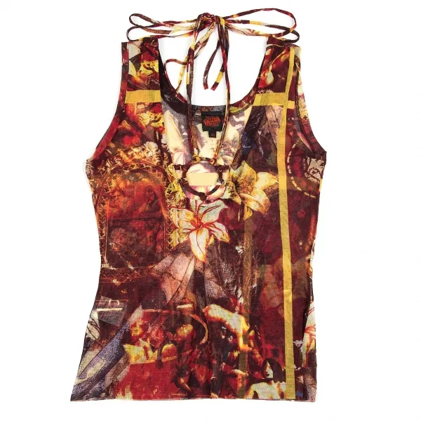 ジャンポールゴルチエJean Paul GAULTIER フラワープリントリングネックパワーネットノースリーブ エンジ黄40