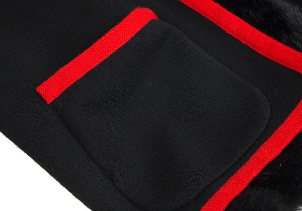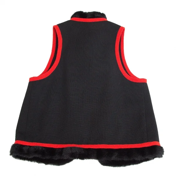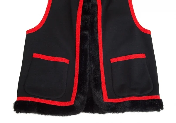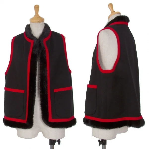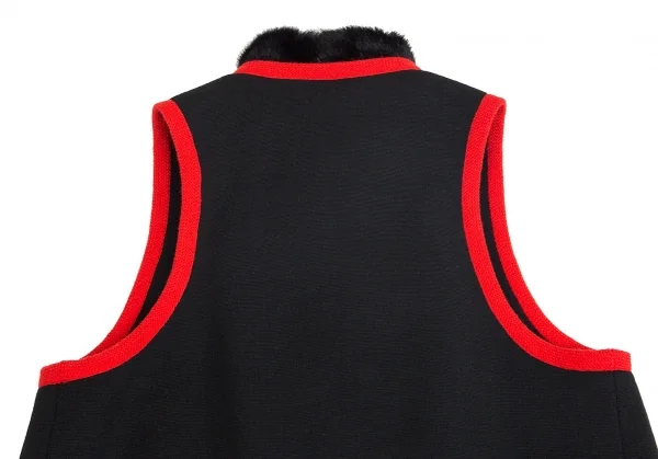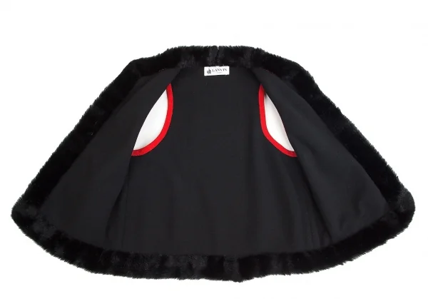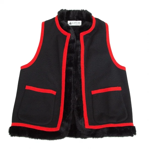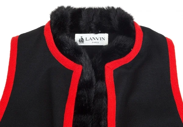 ランバンLANVIN ファートリミングボタンレスベスト 黒赤M位
