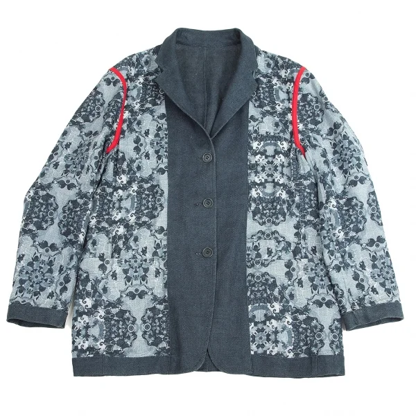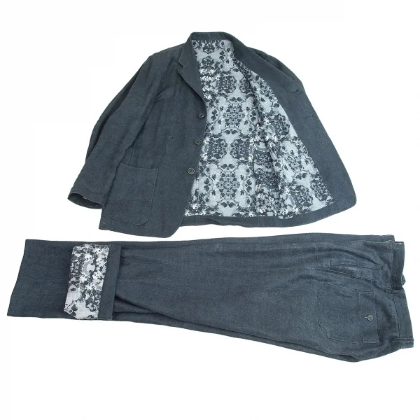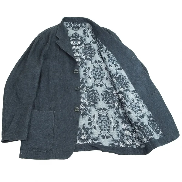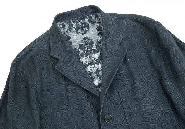 イッセイミヤケ メンISSEY MIYAKE MEN 染め柄リバーシブルリネンBジャケット 紺3