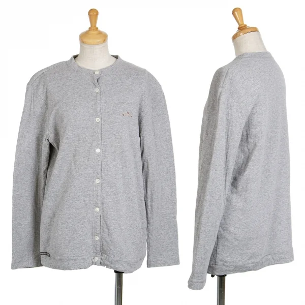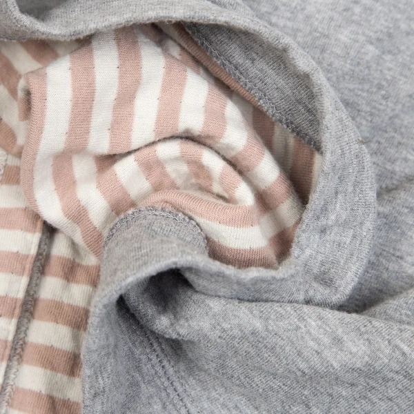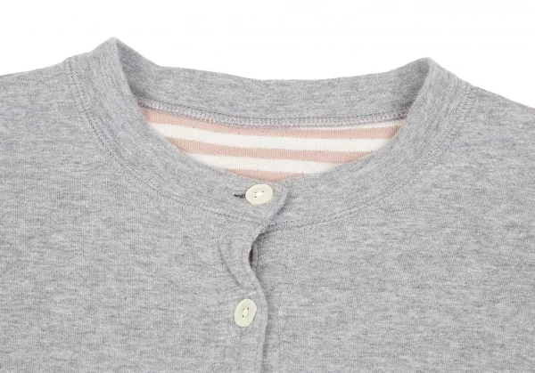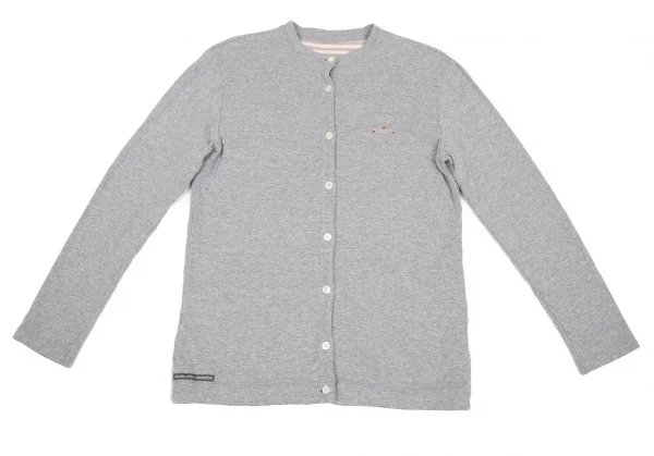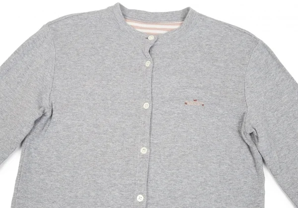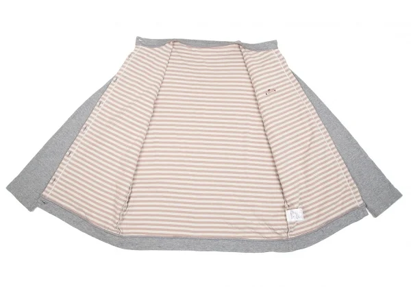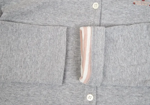 マドモアゼルノンノンMademoiselle NON NON 裏ボーダーコットンカーディガン 杢グレーピンク40L