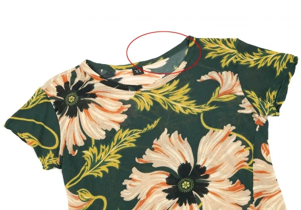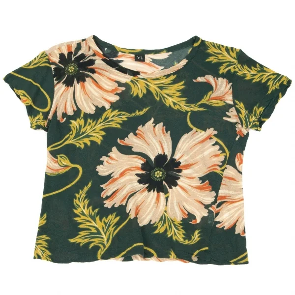 【SALE】ワイズY's ジョーゼットフラワープリントTシャツ 緑マルチ2