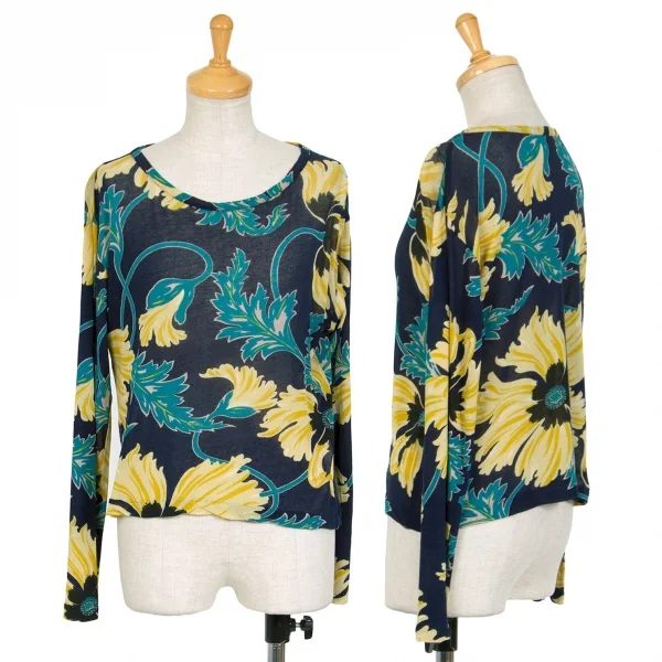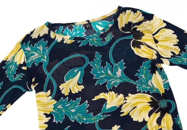 ワイズY's ジョーゼットフラワープリントカットソー 紺マルチ2
