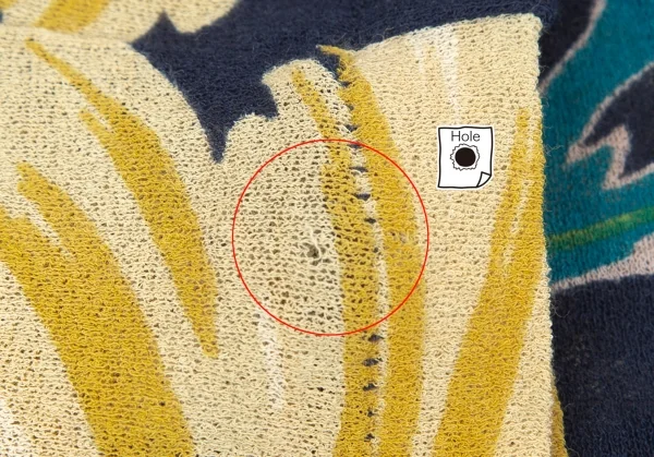 透け感のある生地です。右袖先に小穴があります(写真参照)。その他に目立ったシミ、汚れ、ほつれ等なくいい状態です。クリーニング済み